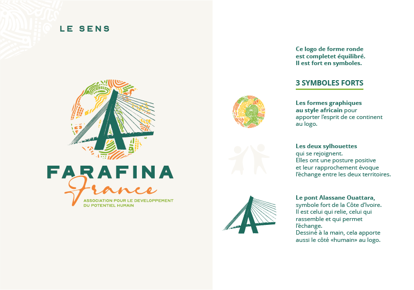 J’ai eu le plaisir de créer le logo de l’Association Farafina, qui œuvre pour le développement de projets solidaires entre la France et l’Afrique de l’Ouest. Une identité visuelle pensée pour refléter les valeurs de partage, de solidarité et de lien interculturel, au cœur des actions de l’association.